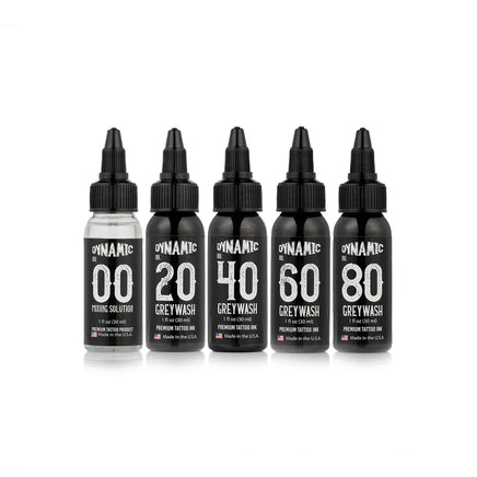 After years and years of you asking, we have finally produced a Dynamic Ink Greywash Set blended from our tried & true original black formula. The specific formulas come from countless tests and years of polling black and grey specific artists to gather a commonality in ratios for the perfect 4 bottle set. We use the purest hospital-grade water, which is filtered, distilled, and UV sterilized in our facility, to ensure the #00 Mixing Solution in our Dynamic Ink Greywash Set is at the utmost purity and held to the highest standard. The addition of witch hazel to this solution not only adds a visible smoothness to your work but also brings a soothing quality and feeling to your clients.