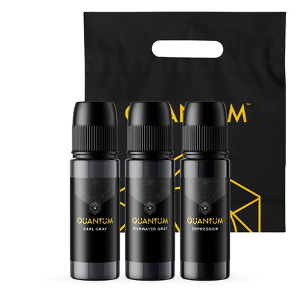 Quantum Tattoo Ink’s 3 Shades of Gray Set, the ultimate grayscale trio for artists who know that gray isn’t just a color—it’s a mood.
