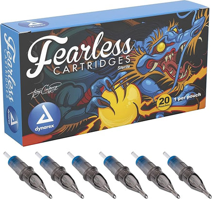 Dynarex Fearless Tattoo Cartridges are constructed with surgical-grade stainless steel needles for detailed technical work and precise lines. The fine point of each needle is designed to provide increased comfort to clients during the tattooing process. Fearless Tattoo Cartridges feature a safety membrane system to help prevent ink backflow and other contaminants from getting into plastic casing, cartridge grip, and rotary or coil machines. The transparent body of each cartridge allows for improved visibility of needle work while tattooing for design precision. The Fearless Tattoo Cartridge Line encompasses a variety of Round Liners and Tight Round Liners.